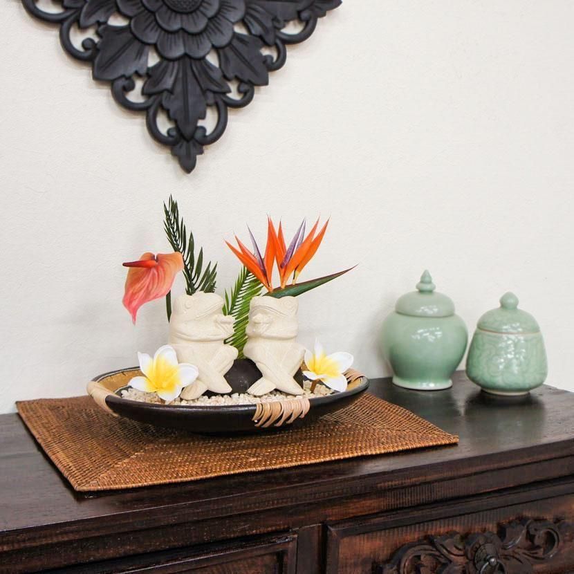 5,900円(内税)バリ島のカエルの石像とフェイクグリーンをアレンジしたリゾート風オブジェです。!