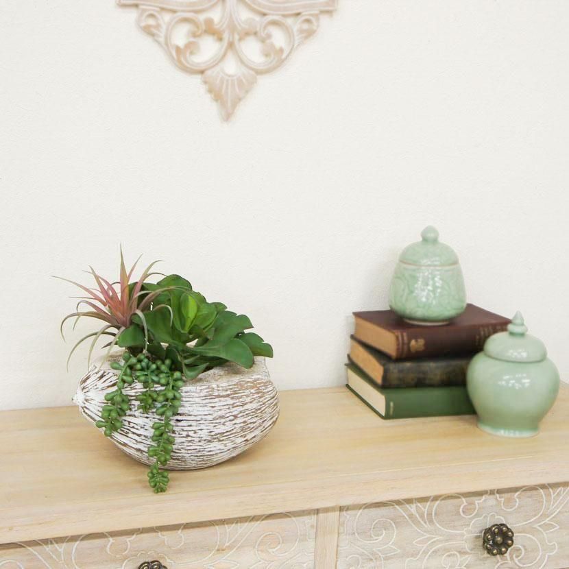 10,900円(内税)人工観葉植物を、バリ島のアジアンテラコッタに装飾したオブジェセットです。