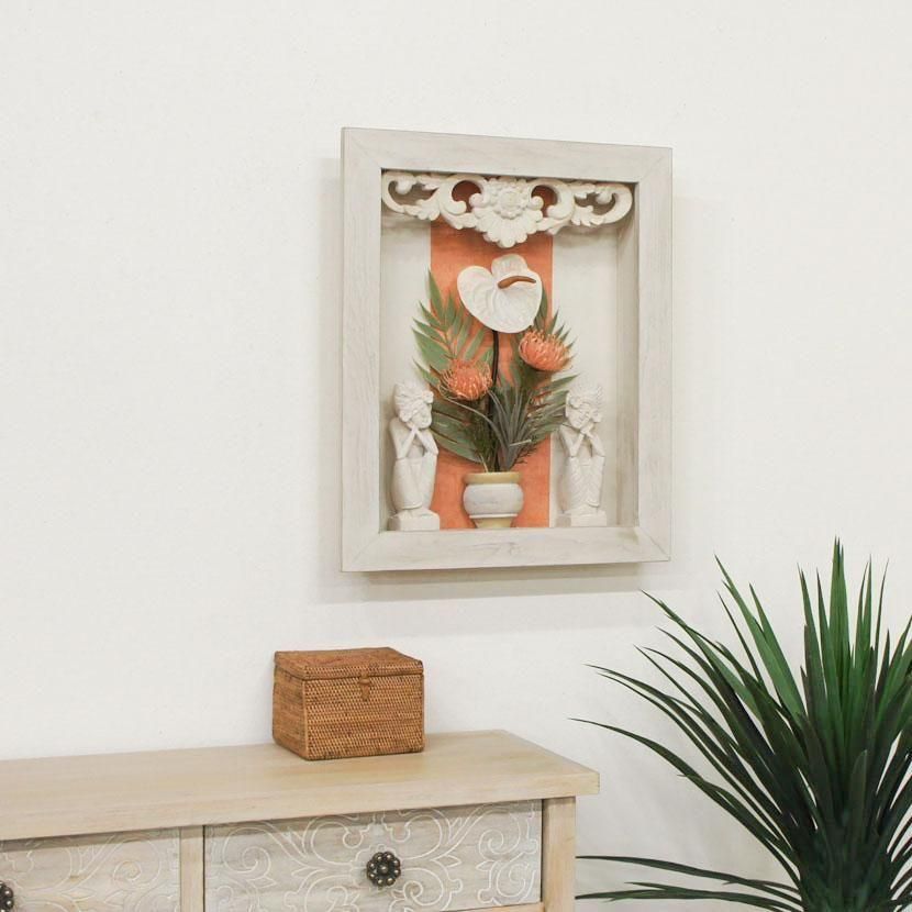 16,000円(内税)造花とバリの可愛い石像がコラボしたオシャレな壁飾り!フェイクグリーンで手間いらず! -