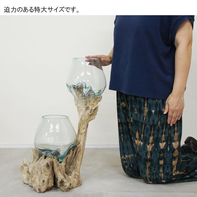 34,300円(内税)天然木にバリガラスのボウルを乗せた個性的なオブジェです!水や砂利でオシャレに飾って下さい!