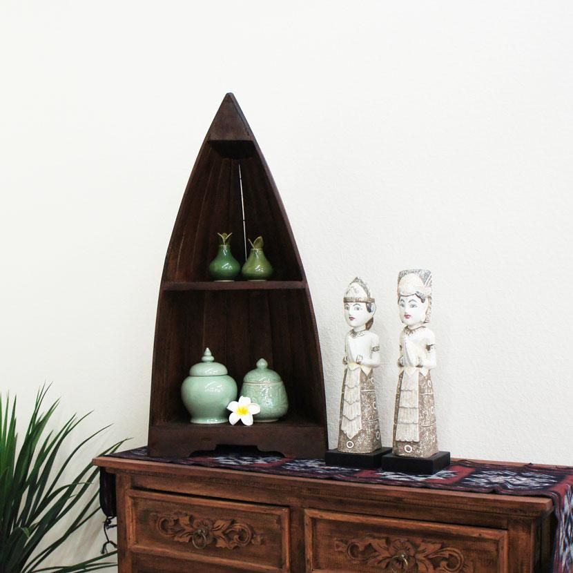 アジアン木製ボート型飾り棚SS /H72cm/BF-012SS