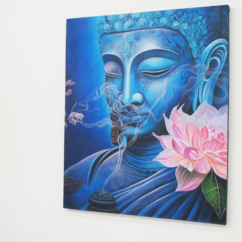 静けさと神聖さを併せ持つブッダの表情と、お香の煙が心落ち着かせる癒しの雰囲気を演出します。