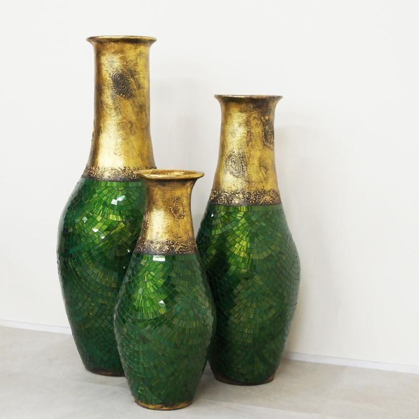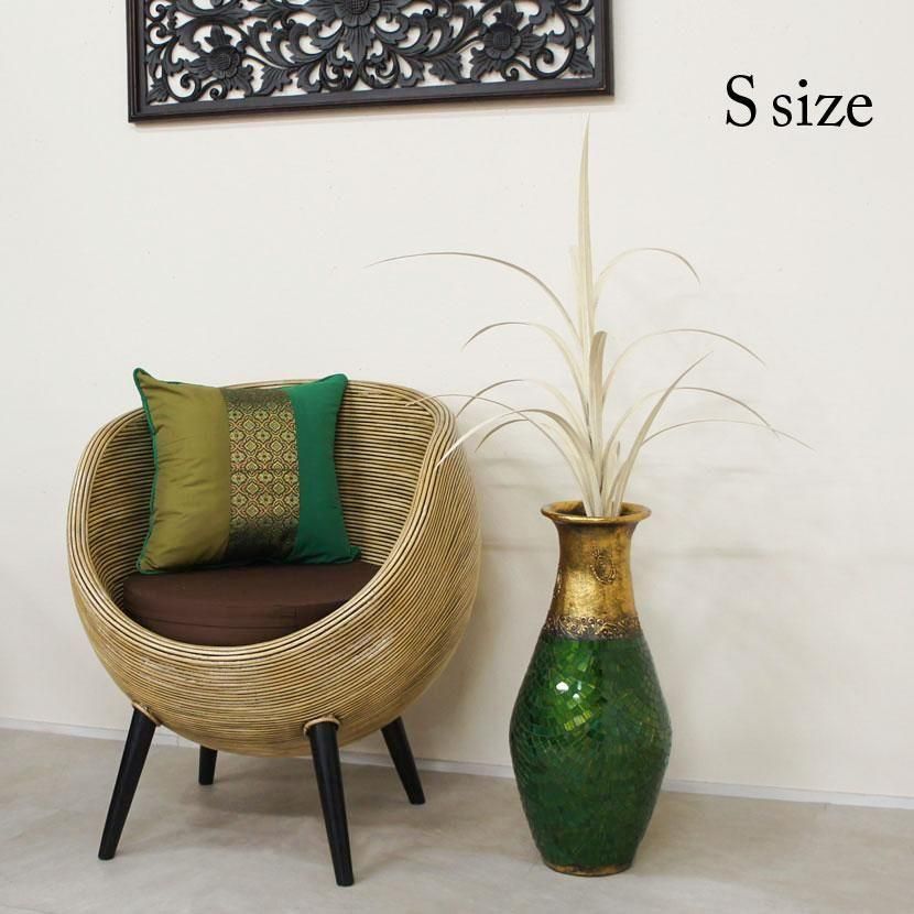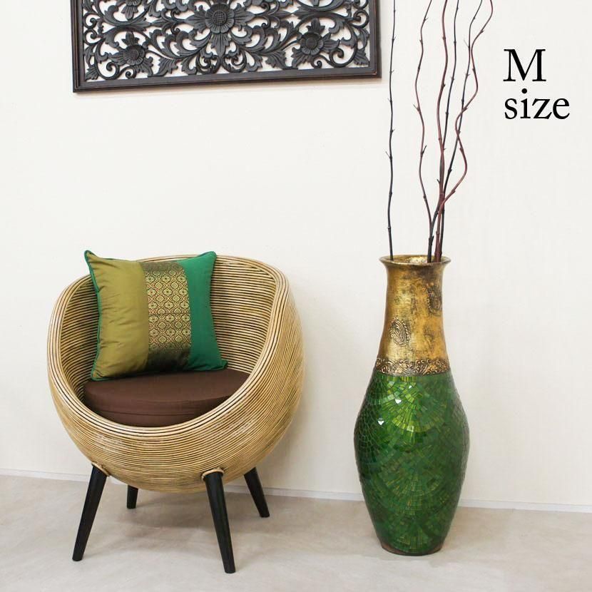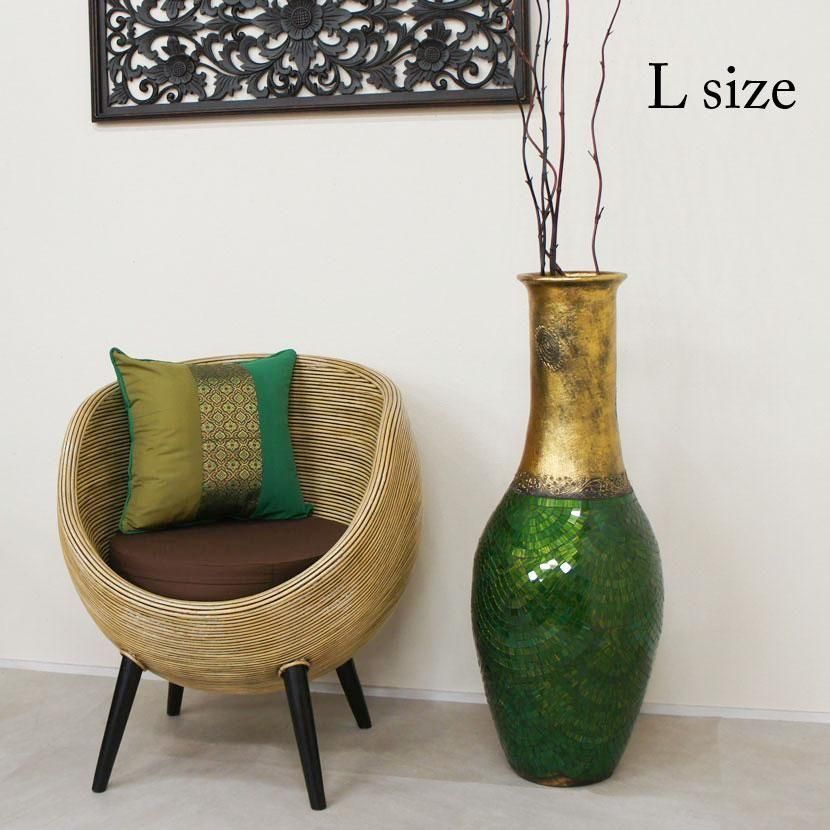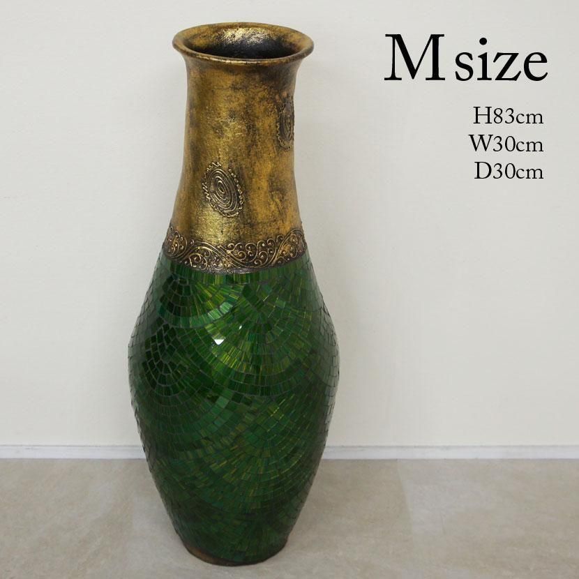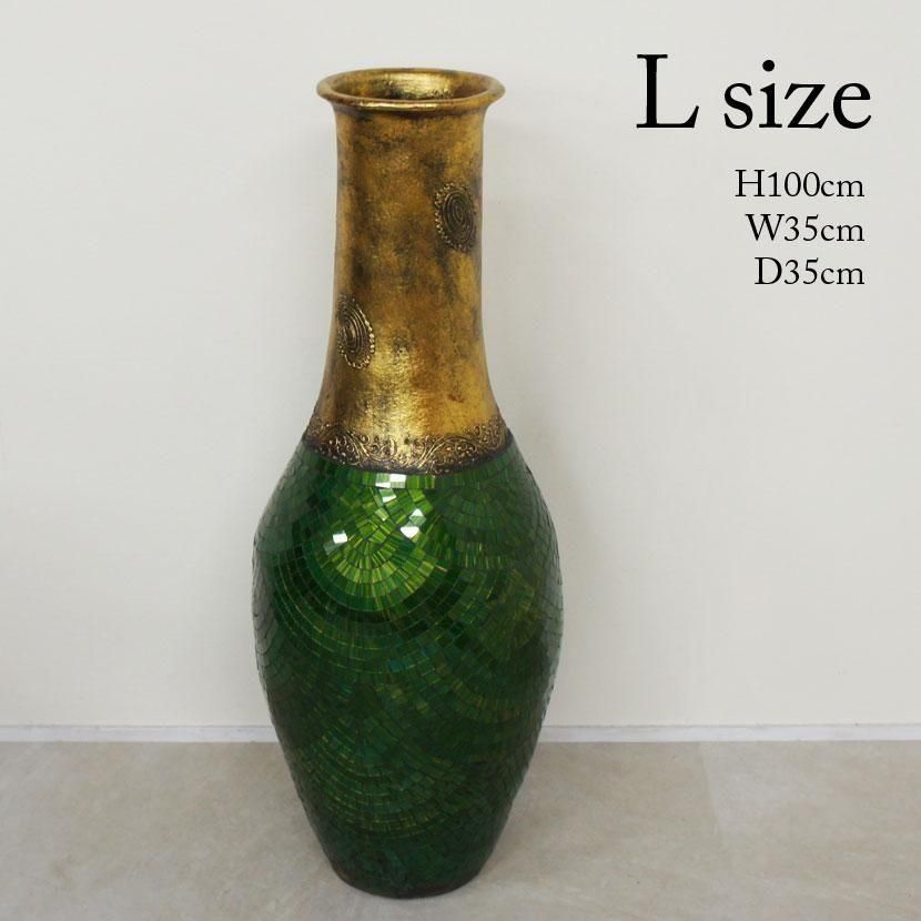 アジアン壺 モザイクガラス グリーン 3サイズ /OB-043GR