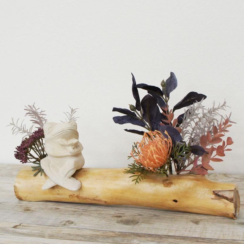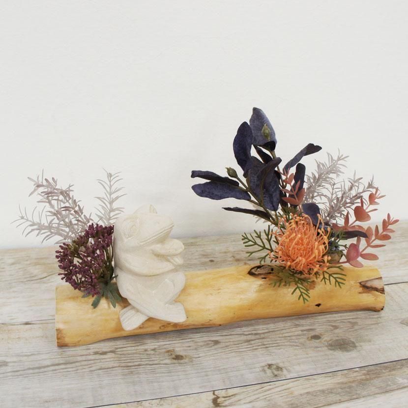 バリカエルと人工観葉植物の流木アート /W40m/GO-002-94