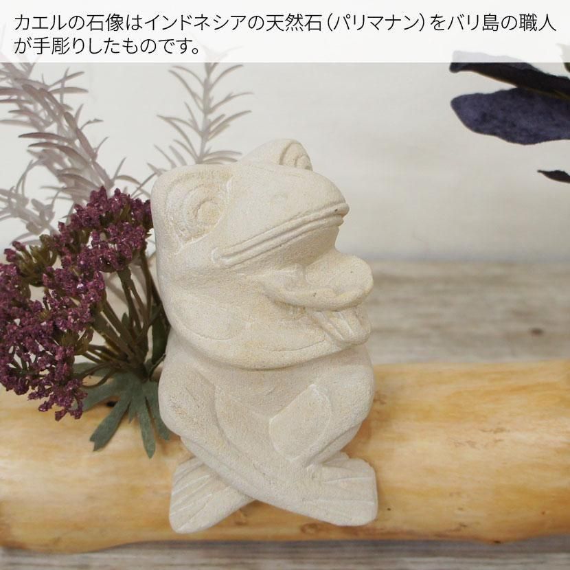 カエルの石像は、インドネシアの天然石(パリマナン)をバリ島の職人が一つ一つ手彫りしています。