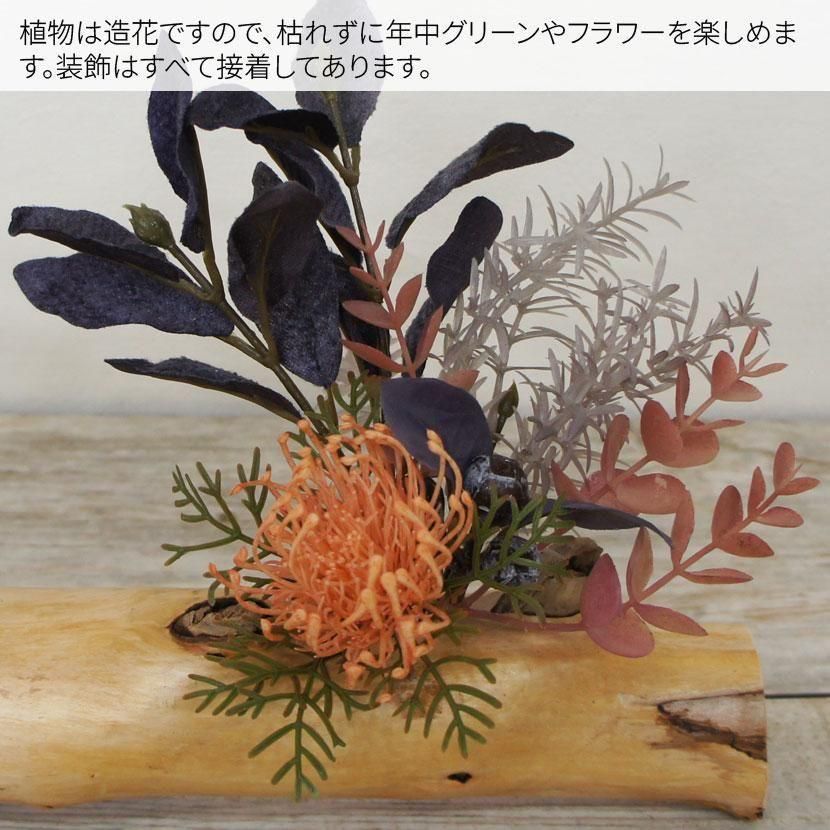 天然木を土台にした、ナチュラルな雰囲気のオブジェです。