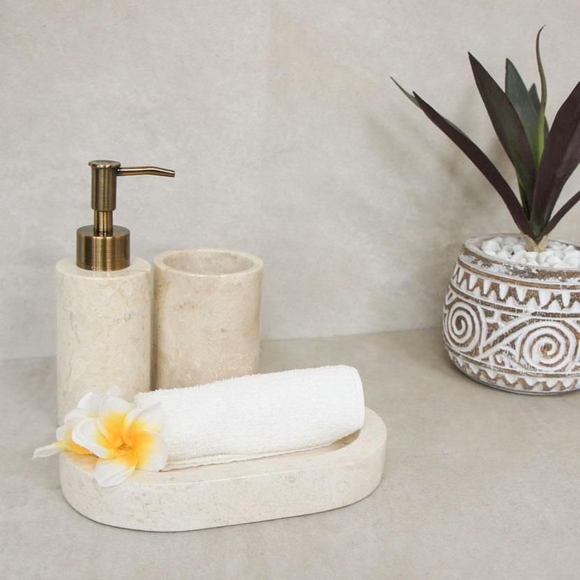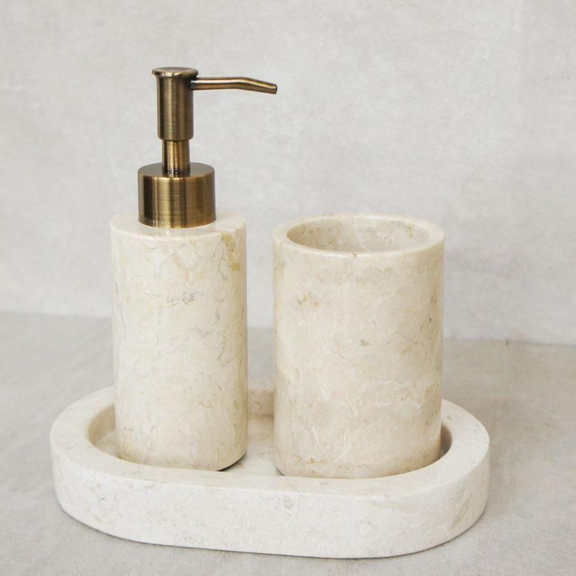 インドネシアの天然石で作られた、ソープディスペンサーのセットです。