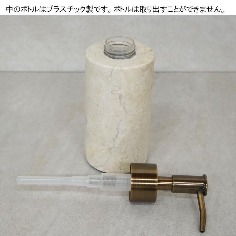 液体ソープ入れは、石の中にプラスチックポンプの容器が入っていますが、プラスチック容器の出し入れはできません。