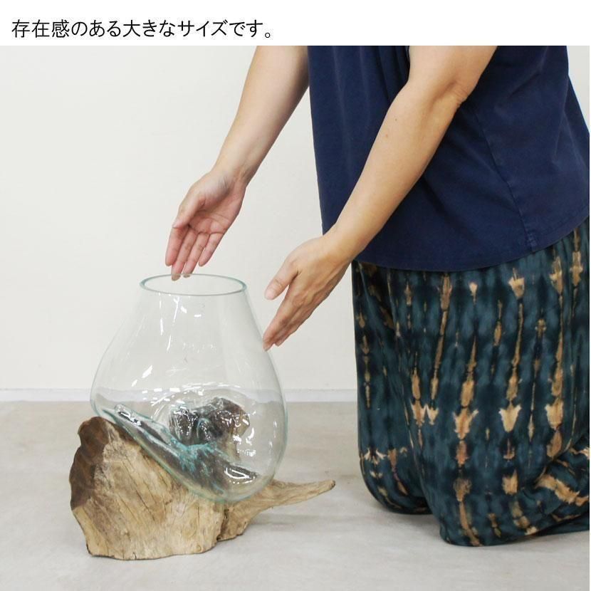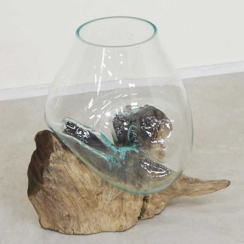 天然木とバリガラスの水鉢 /H33*W34cm/OB-095O1-11