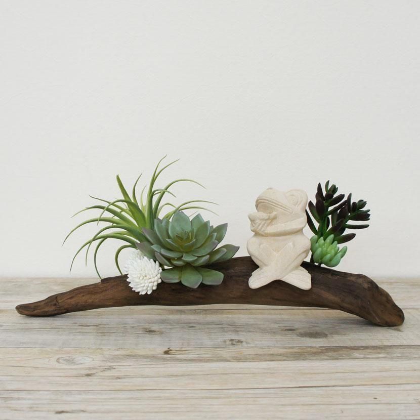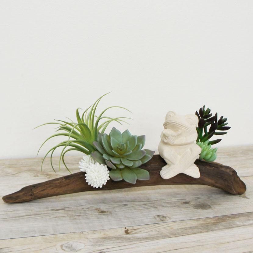 バリカエルと人工観葉植物の流木アート 多肉植物 /幅43cm/GO-002-95