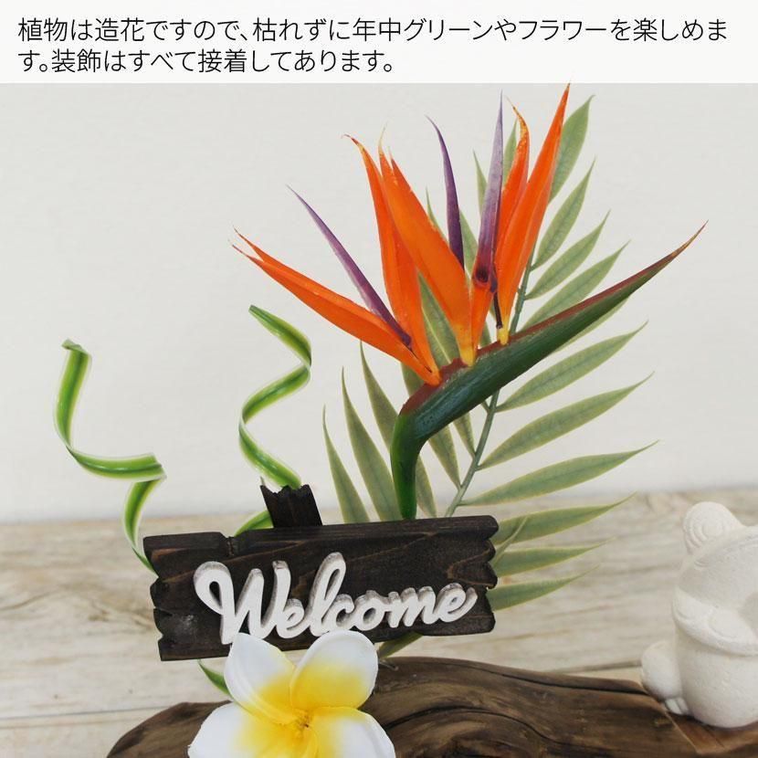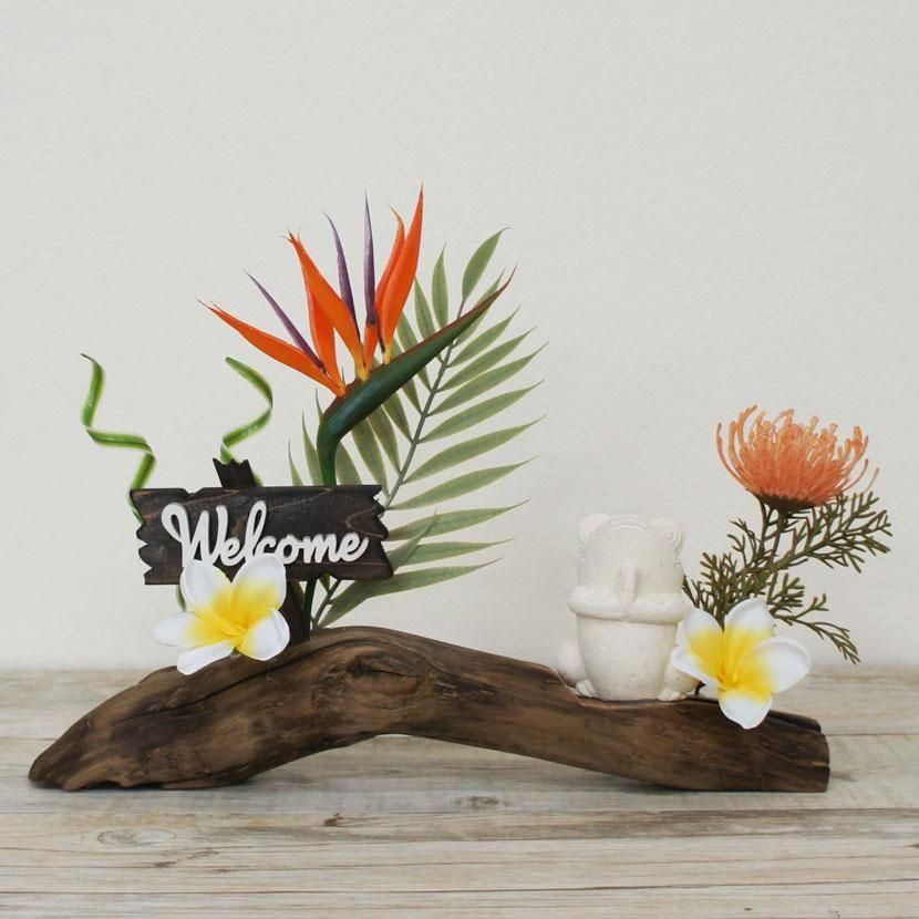 バリカエルと人工観葉植物の流木アート フラワーアレンジメント ウェルカム /W40cm/GO-002-96