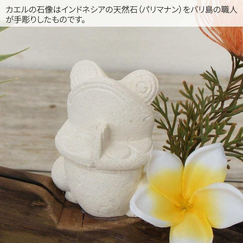 カエルの石像は、インドネシアの天然石(パリマナン)をバリ島の職人が一つ一つ手彫りしています。