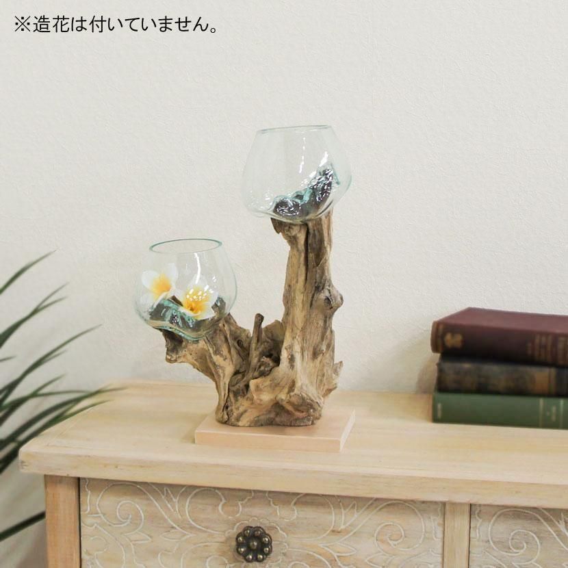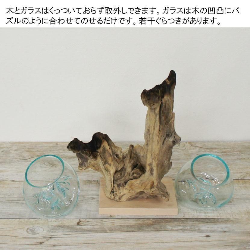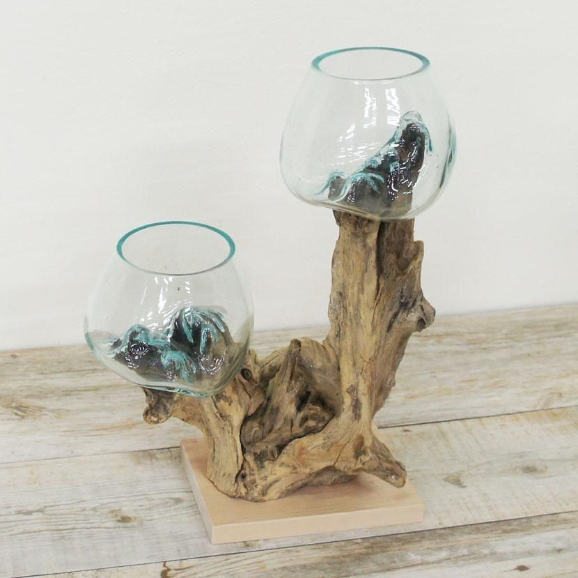 天然木にバリガラスのボウルをトロンと乗せた、ユニークなアジアンオブジェです。