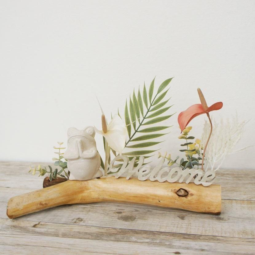 バリカエルと人工観葉植物の流木アート フラワーアレンジメント ウェルカム /W37cm/GO-002-97
