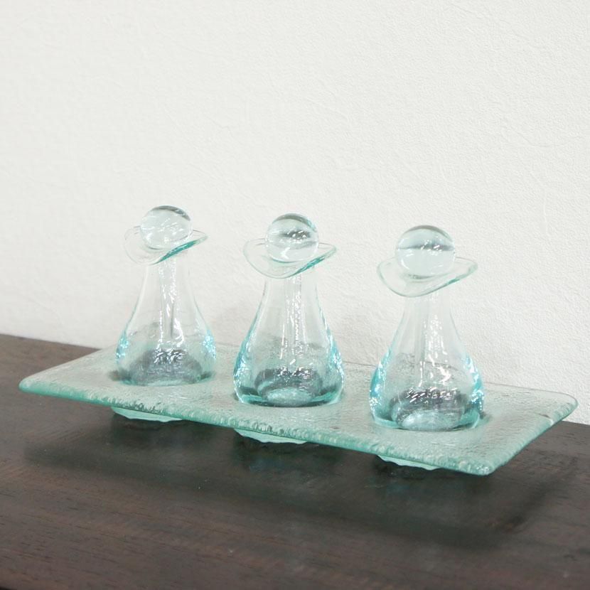 バリガラスでハンドメイドしたアロマオイルボトルセットです。
