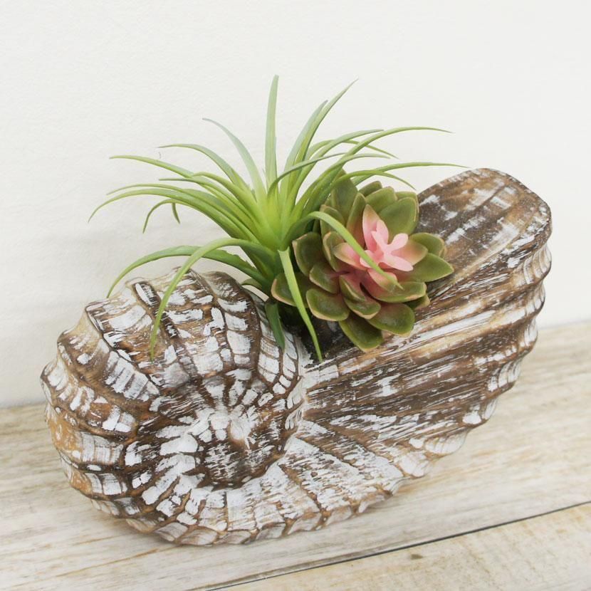 バリ島木彫りとフェイクグリーンのオブジェ /W25cm/WH-001L