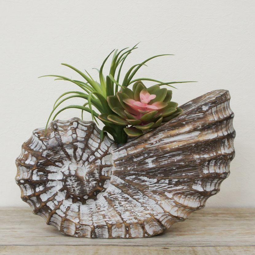 土台はアンモナイトをデザインした木彫りで、インドネシアの職人が一つ一つ手彫りしたのもです。