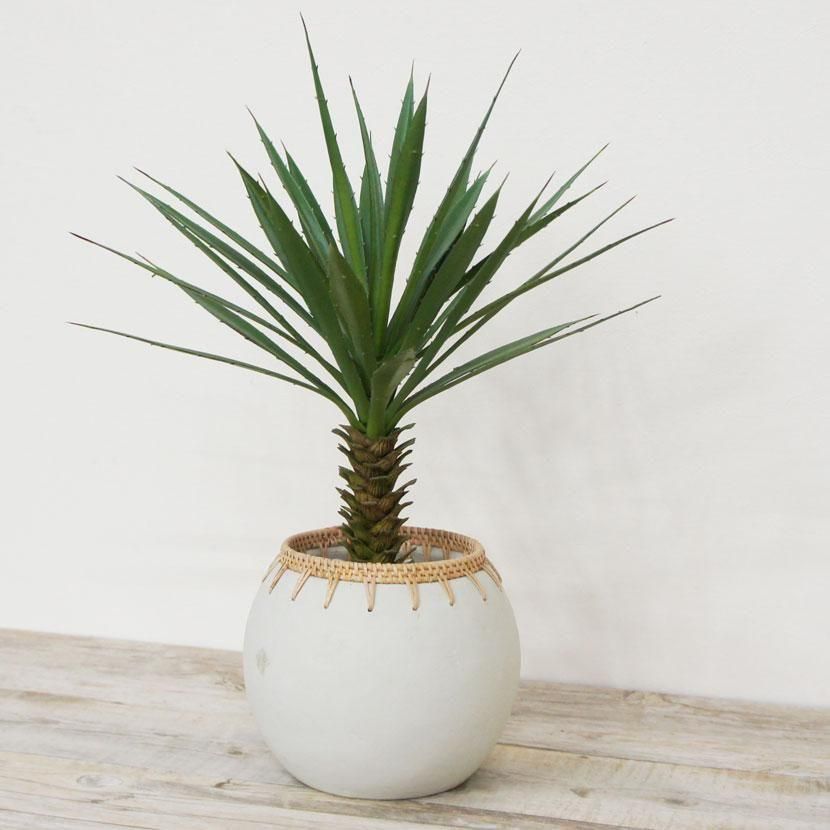 鉢に使用しているのは、ハンドメイドのテラコッタの器で、フチにバンブーの編みを装飾した、シンプルなリゾート風のデザインです。