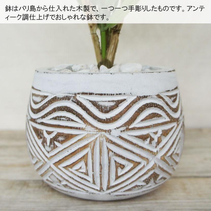 鉢に使用しているのは、バリ島で仕入れた手彫りの木製レリーフの器です。