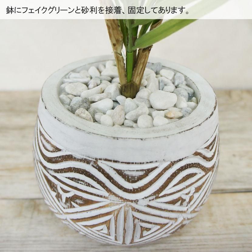 バリ島の木製彫刻の鉢に、人工のヤシをセットしたインテリアグリーンオブジェです。