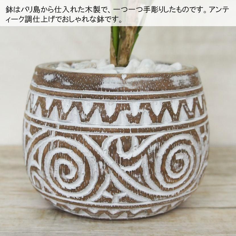 鉢に使用しているのは、バリ島で仕入れた手彫りの木製レリーフの器です。